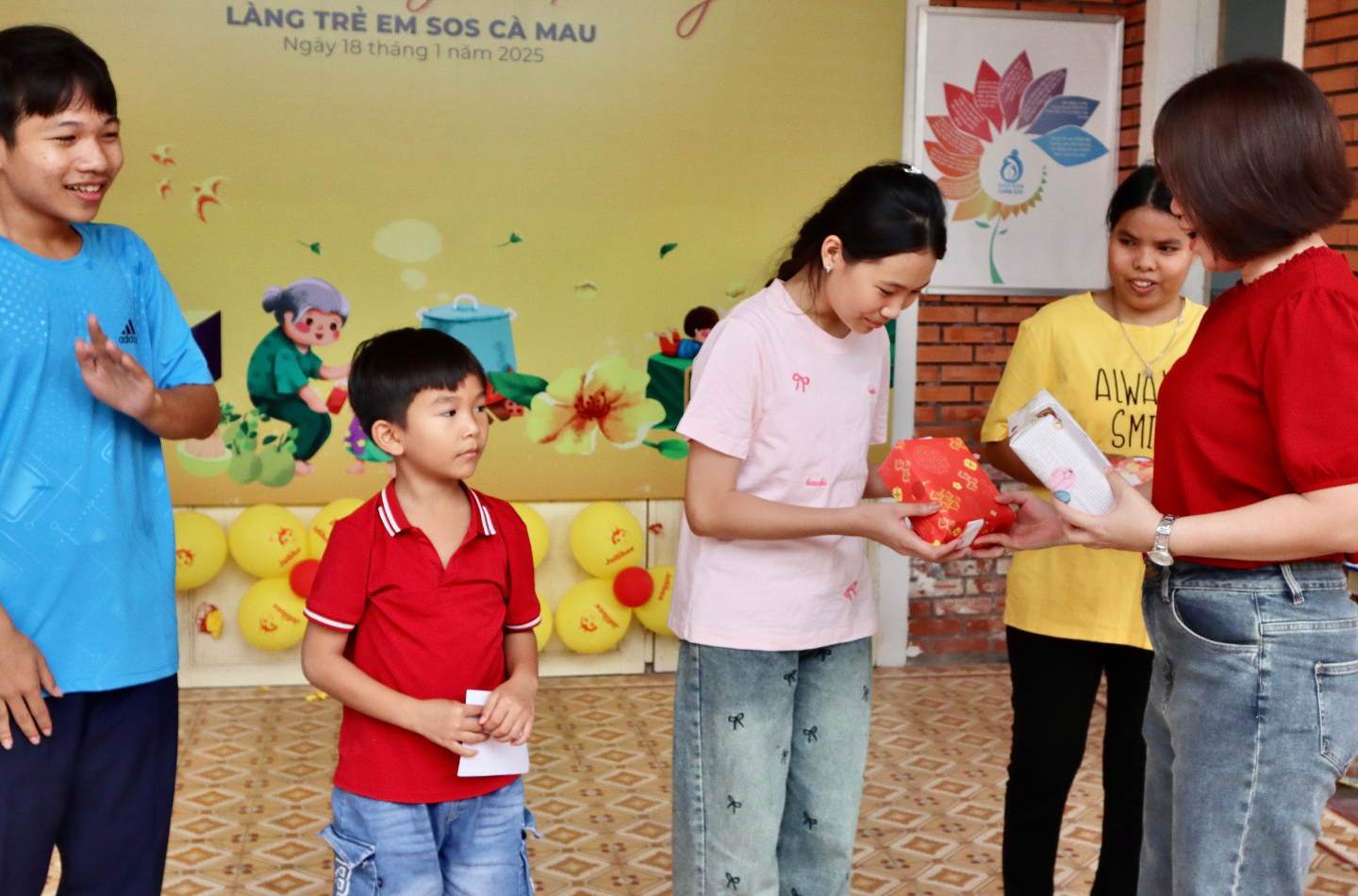 Chị Bùi Thị Kim Xoạn - Giám Đốc Vận Hành của Dh Foods, đã tận tình phát quà và gửi lời động viên đến các em. Mỗi phần quà trao tay đều thể hiện tấm lòng và sự quan tâm của đại gia đình Dh Foods.
