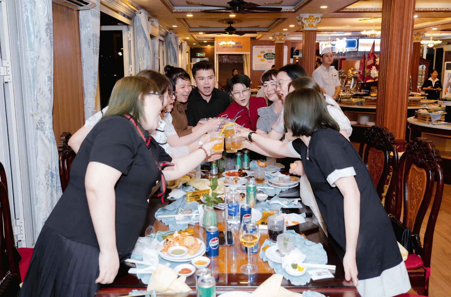 Trong không gian chung, các thành viên cùng nhau thưởng thức món ăn, trò chuyện và chia sẻ những câu chuyện cuối năm tạo nên những khoảnh khắc thư giãn hiếm có, nơi sự kết nối được hình thành một cách tự nhiên và ấm áp.